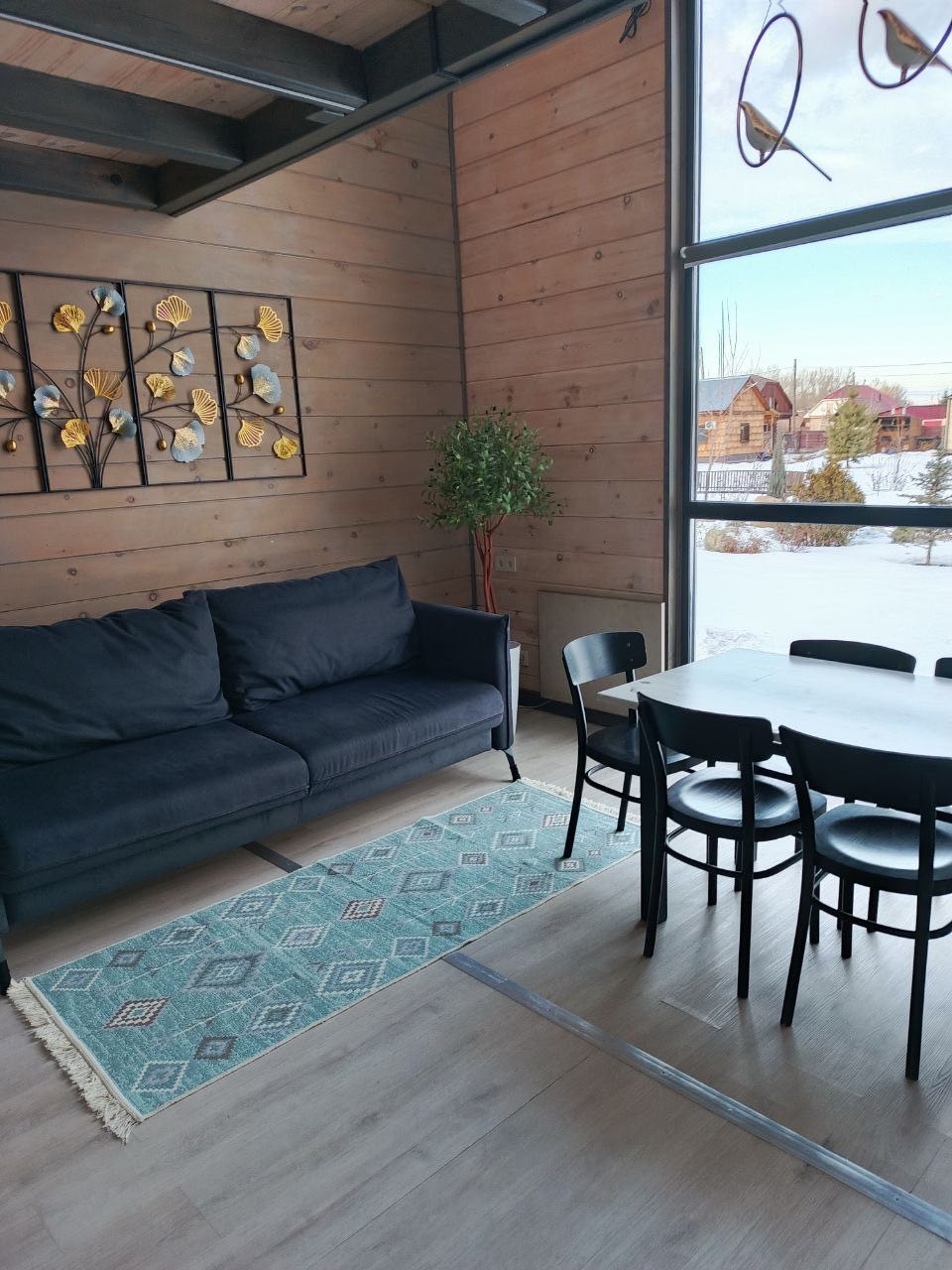 Из развлечений - телевизор и умная колонка Алиса, которая включит подсветку дома, и подберет музыку под настроение.