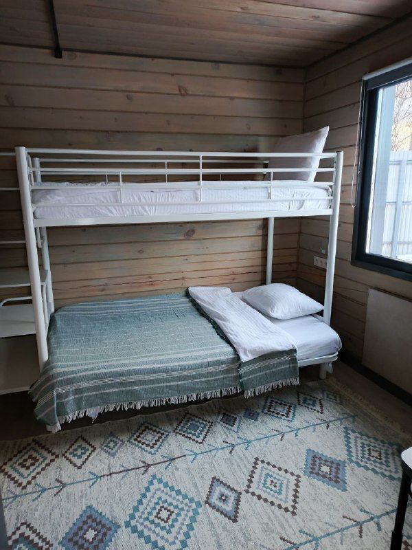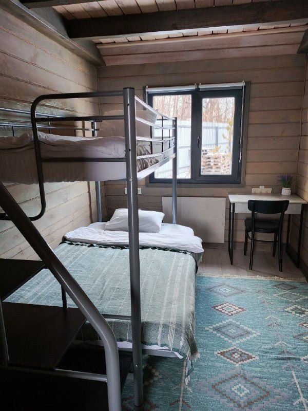 Вместимость 7 человек. Две двухъярусные и три односпальные кровати и удобный диван. Вполне достаточно для семьи, друзей или группы путешественников.