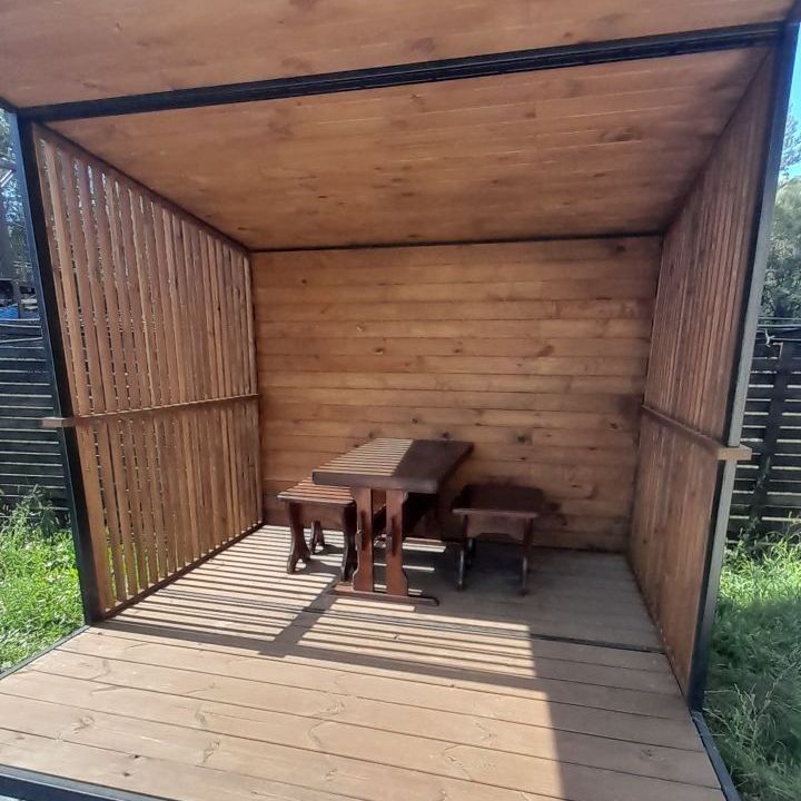 У каждого дома своя беседка. Также на территории оборудована общая мангальная зона для все домов.
