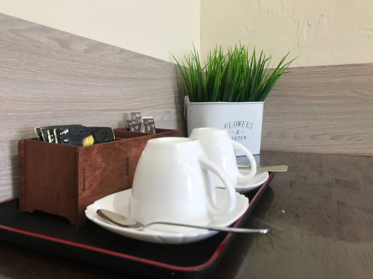 стульями, набор для приготовления чая/кофе. В